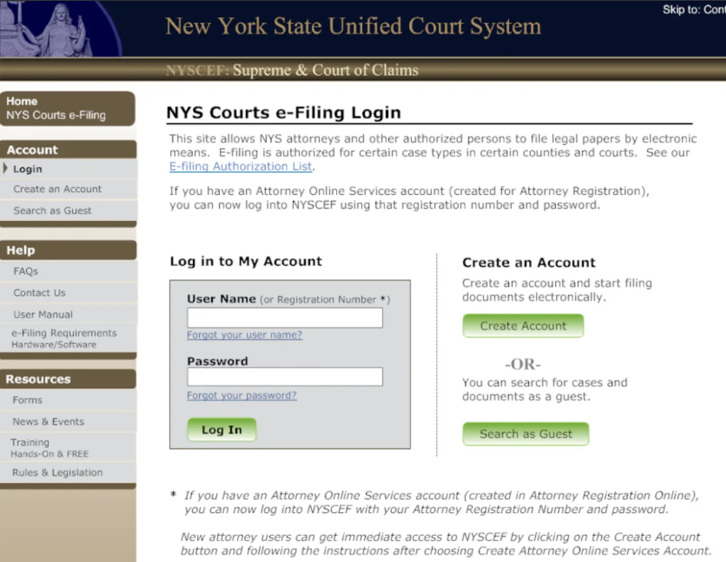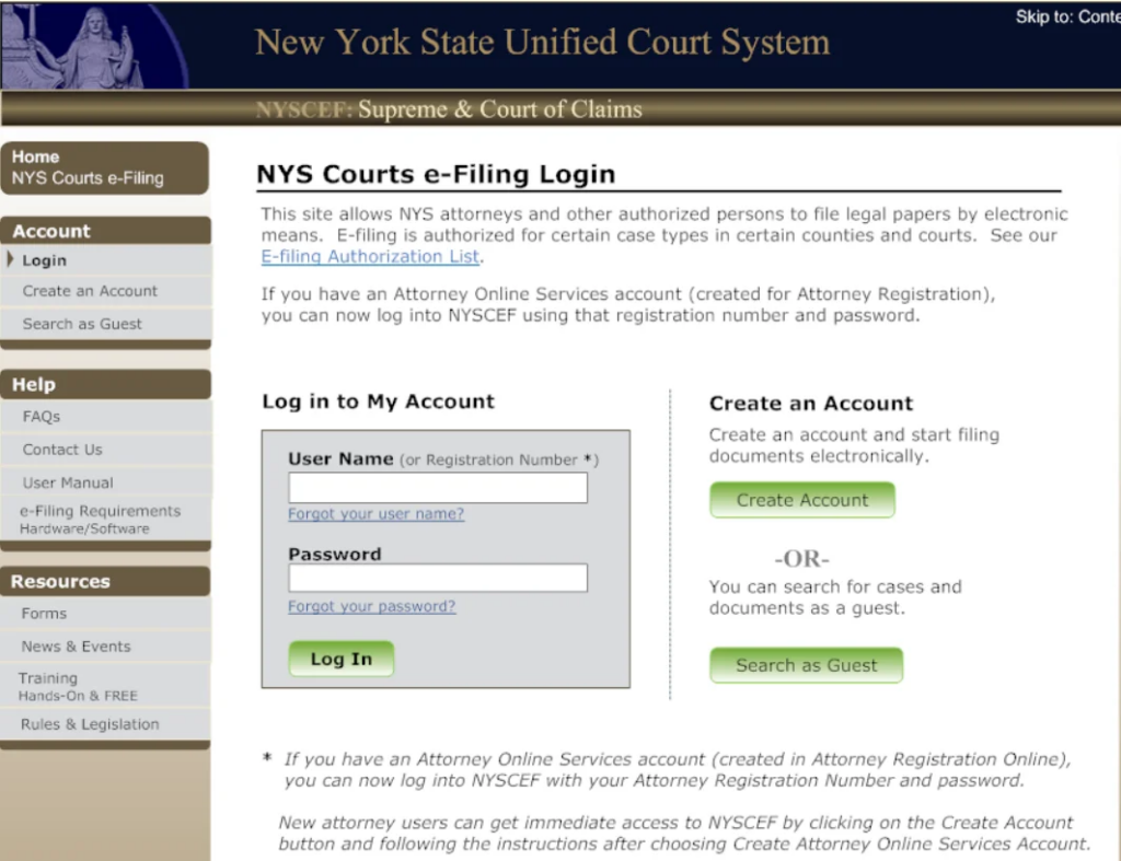 The nyscef login page is the official sign-in screen for the New York State Courts electronic filing system. Users open this page to enter their login credentials and sign in to the official court portal for online case filing and document review. The nyscef log in process begins on the official NYSCEF website managed by the New York State Unified Court System. Legal professionals, registered filing users, and approved guests visit this page to reach the digital system used for court filings and case records.