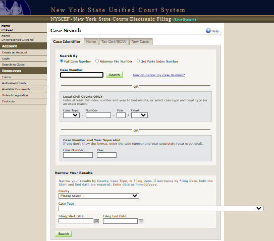 - Visit the official NYSCEF case search page